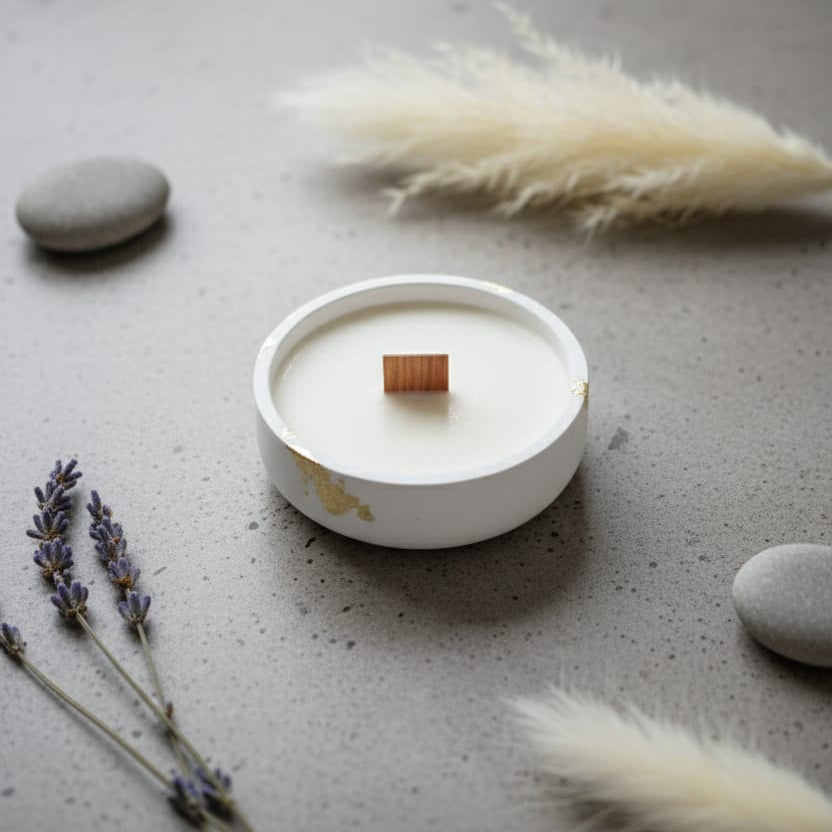 For those who appreciate subtlety and refined detail, the Minimalistic Golden Halo is the perfect choice. This candle proves that true elegance lies in understated design. It is housed in a clean, round jar that embodies modern simplicity. The 'halo' refers to the thin, delicate application of golden foil around the vessel, a radiant accent that adds a touch of accessible luxury without overwhelming the clean design. Inside the jar rests 60 grams of premium soy wax, ensuring a pure and responsible burn. The fragrance selected is the timeless and deeply calming non-toxic scent of Sandalwood. This rich, woody, and slightly sweet aroma is a classic for promoting relaxation and focus, making it ideal for meditation or simply winding down. The eco braided wick provides a steady, bright flame, causing the golden halo to shimmer softly as the scent slowly fills the room. The Minimalistic Golden Halo is a beautiful everyday luxury that seamlessly integrates into your existing decor, providing a gentle yet consistent source of sophistication and serene fragrance.